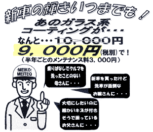 ★ 新車の輝きいつまでも! ガラス系コーティングが9,000円 ★ |